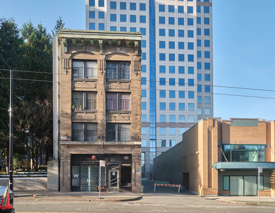 November 11th, 2025 — “Unlimited Growth Increases the Divide” are the words carved into concrete above the first floor of 553 Hamilton Street.